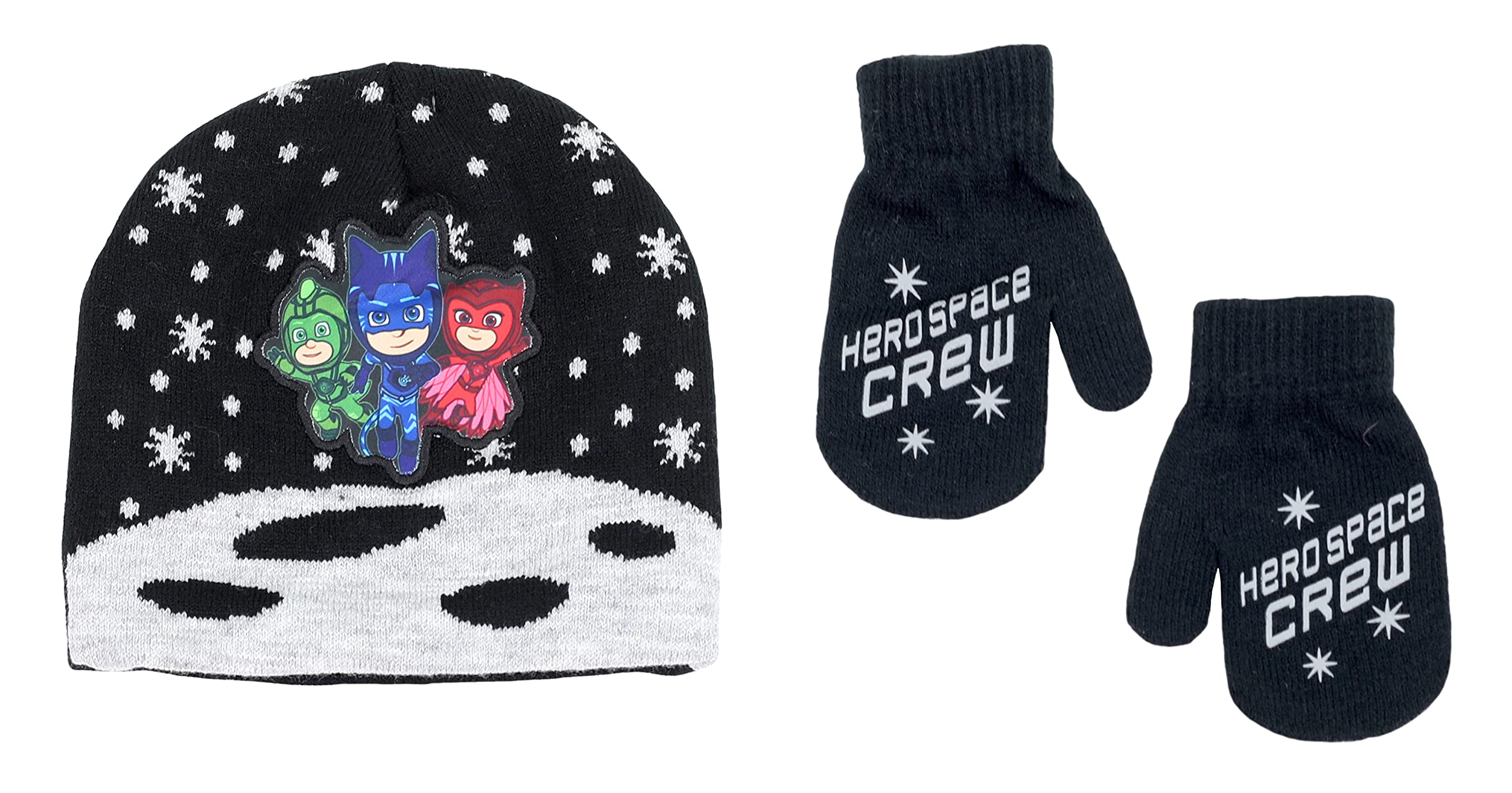 PJ Masks Toddler Boy’s Embroidered Winter Hat and Mittens Set, 2-5T, Black